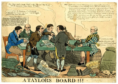 The journeymen tailors had a history of solidarity dating back at least to the early 15th century. What nowadays would be called trade unions were then in existence, under the names of ‘clubs’ or ‘combinations’, although they were much more at the local level than trade unions are today. The tailors operated some 15-20 ‘houses of call’ (usually public houses that acted as something between union hall, meeting place, labour exchange and social centre).
