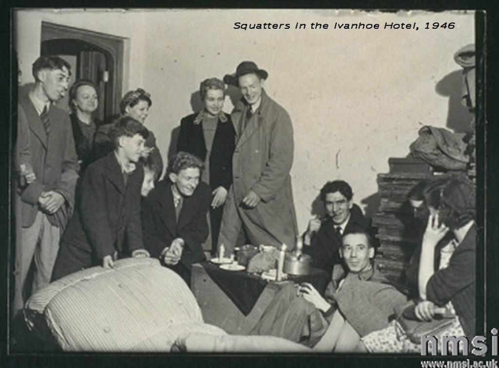 The Ivanhoe Hotel, on the corner of Bloomsbury Street and Great Russell Street, was squatted on Wednesday September 11th. Empty for some time, it had been used during the war to house Irish labourers repairing bomb damaged buildings. The squatters here used a diversionary tactic to get in to the Ivanhoe… One group drew police who were on their back off to another building some distance off, while another group moved in on the hotel (possibly though according to James Hinton, they got in through an underground tunnel the police had no idea was there). 12 families broke in through boarded up doors; by this time the cops had got wind and turned up, blocking up the doors and reboarding them, to stop other squatters getting in. An attempt by others to force their way in was prevented by the police.