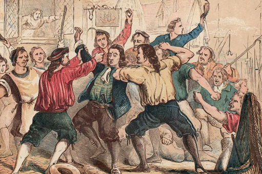 Thus disguised, as soon as it was dusk he got into a boat; and the state of the tide enabling him to shoot London Bridge without danger, he safely reached he coal ship lying off Wapping. Here he was introduced to the captain and the mate, on whose secrecy he was told he might rely; but, as they could not sail till next day, when he had examined his berth, he went on board another vessel that lay at a little distance, there to pass the night….” Unfortunately, he also nipped over to a Wapping pub, now called the The Town of Ramsgate, to have a final drink… and was recognized by a sailor who had previously appeared in court before him. “But hardly believing his own senses, he entered the tap-room of the alehouse to examine the countenance more deliberately…. An immense multitude or persons were in a few minutes collected round the door by the proclamation of the scrivener that the pretended sailor was indeed the wicked Lord Chancellor Jeffreys… He was now in the greatest jeopardy, for… the persons here assembled were disposed at first to tear him limb from limb, and he was saved only the interposition of some of he more considerate, who suggested that the proper course would be to take him before the lord mayor.