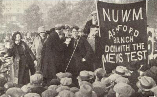 In the midst of the early 1930s Great Depression, unemployment rose to three million with hundreds of thousands even in the ‘prosperous, non-distressed’ south east and midlands joining the dole queues. Successive governments were determined that as much as possible working people should bear the brunt of the recession, and that as little as possible be spent on benefits to those out of work and their families. Savage regulations imposed on claimants made receiving any benefits a humiliating and vicious process. The ‘Not genuinely Seeking Work’ clause was used to cut off dole from anyone deemed not to be looking hard enough for work; the Means Test forced people to sell everything they had before receiving benefits and forced the unwaged to undergo humiliating examinations to prove they were virtually destitute before they could get the benefits.
