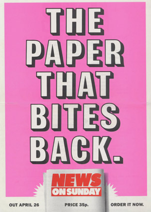 When Vanessa Engle (who worked as an editorial assistant at News on Sunday) was producing the BBC2 programme on the newspaper, she asked when I knew it would fail – imagining I would say 26th April 1987, the Sunday of the first issue, when we realised how low the sales were. I replied that it was two months earlier. It was the end of a heated day of meetings when we had decided to pulp £85,000 of posters that were ruled unacceptable. I walked round the block and wept, for I knew then the newspaper could not succeed. It wasn’t even that I liked the posters. But I knew an organisation that was capable of agreeing to commission and spend this amount of money, and then – in its schizophrenic decision-making structure – decide to ditch it, could not succeed.