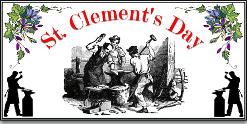 William Hone, in his Daybook, printed the following account of a rowdy annual ceremony on the evening of St. Clement’s day, by the blacksmiths’ apprentices of the dockyard at Woolwich: