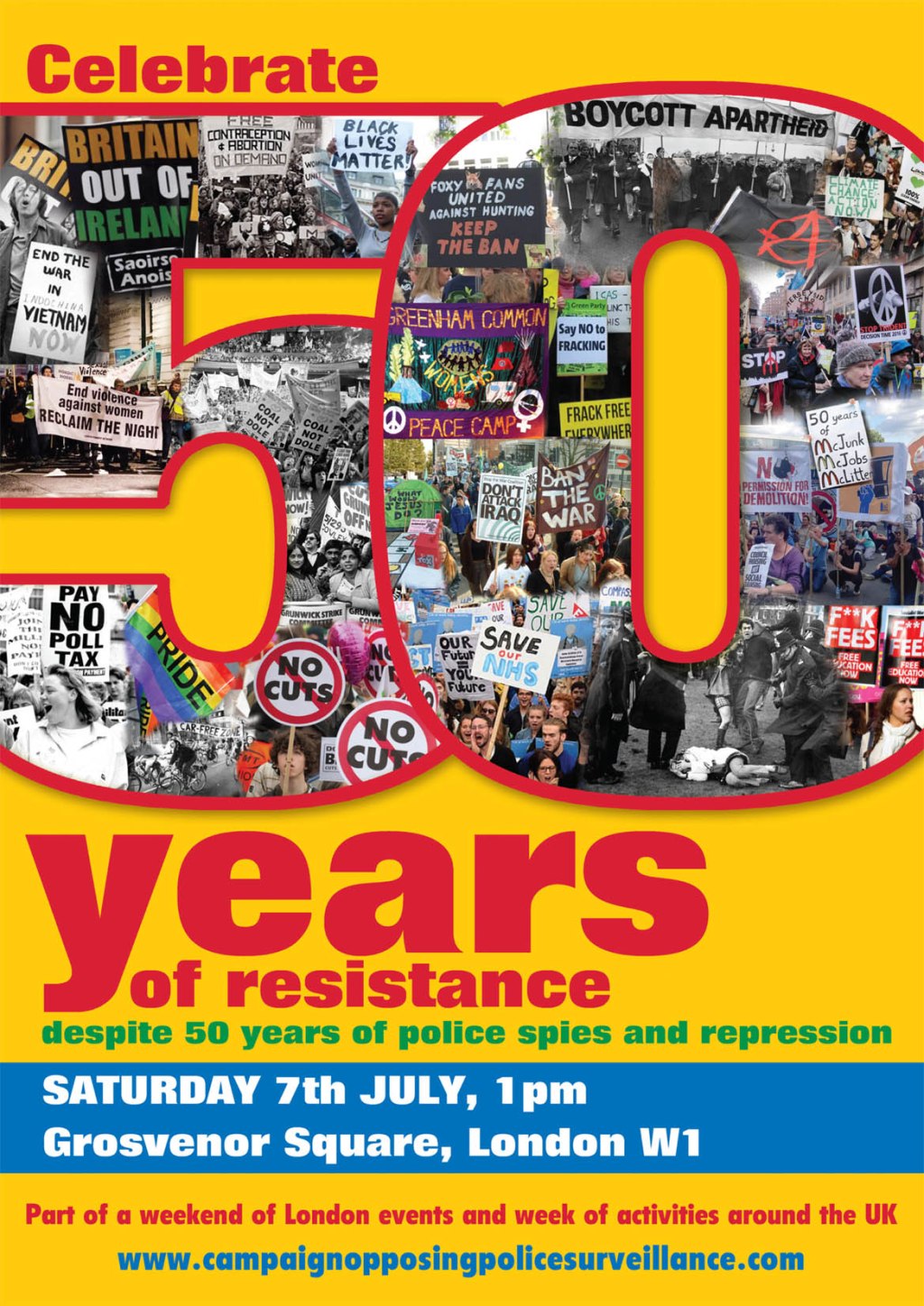 One response to “1968-2018: A Celebration of 50 years of Resistance and Campaigning – despite 50 years of police spying”