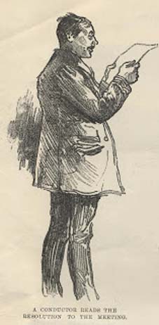 Over 3,000 bus and tram workers attended the first mass meeting at Fulham Town Hall in first week of June 1891 and a second meeting the following day at the Great Assembly Hall, Mile End Road.