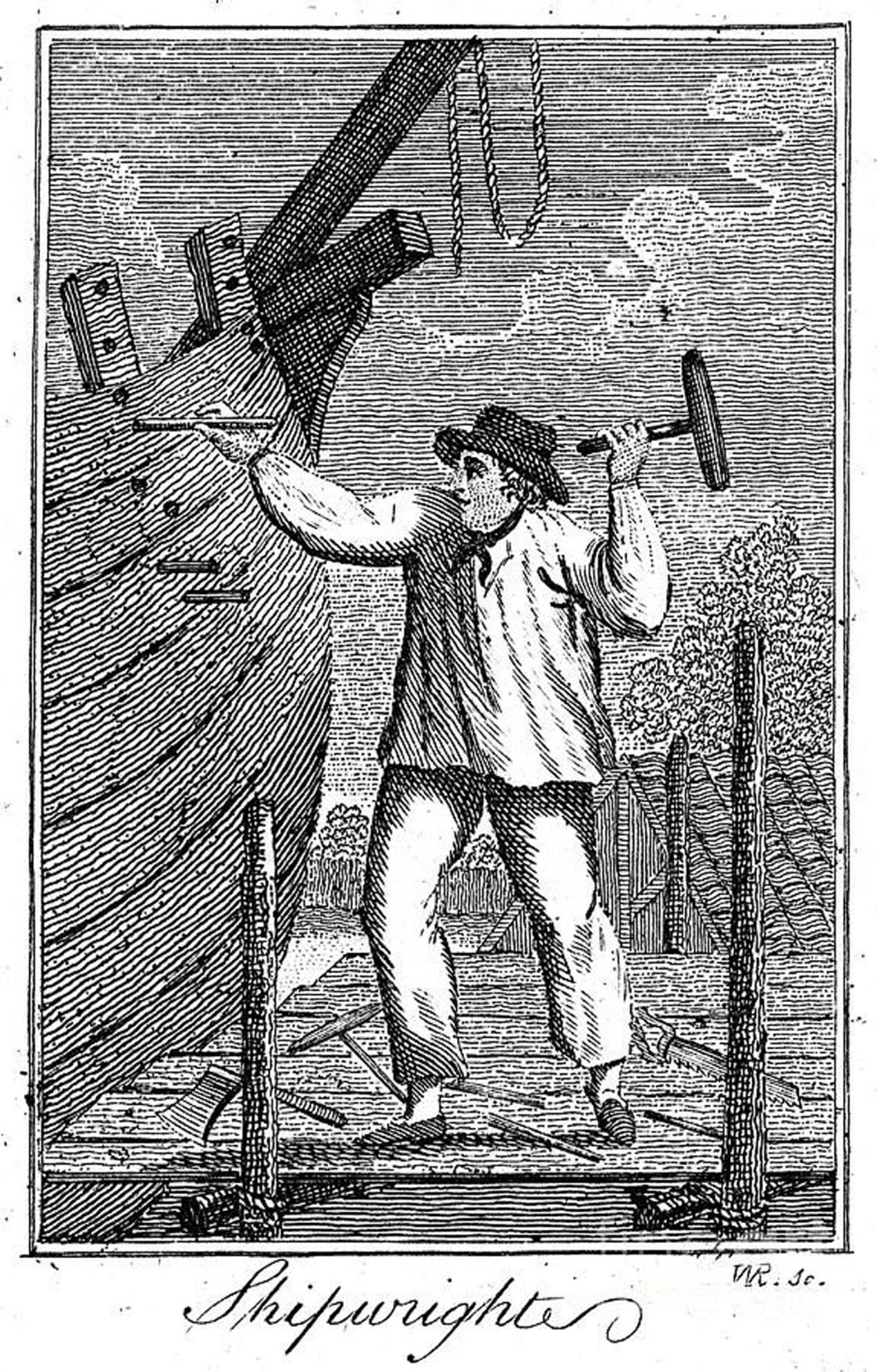 Until the 19th century, ships were largely built of wood, and shipwrights, skilled carpenters, were the backbone of Dockyard organisation. During peacetime in the 18th century it was estimated that 14 shipwrights were needed for every 1,000 tons of shipping in the Navy. There were 2581 shipwrights in the Royal Dockyards in 1804, excluding apprentices. Another 5,100 shipwrights were employed in Private English Dockyards.