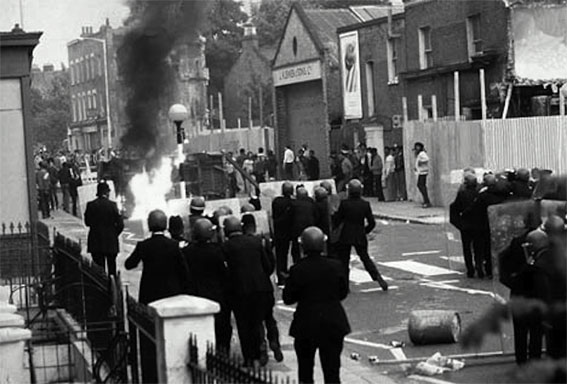 We cut round into Stockwell Road, which was a No Go Area, and helped some young blacks turning over cars and setting them alite. A few cars were still driving innocently in from Landor Road. Those who refused to stop or turn were bricked to bits. I saw white people abandoning their cars, some with their hands in the air. Then a line of riot vans appeared, one got through, swerving through the burning cars amid a hail of bricks. The others held back, as we worked up courage to charge, though we were few our fury was great. “South Africa, South Africa” a kid screamed, as we charged screaming against the pride of the British State, chasing the bastards right back towards Stockwell Tube Station