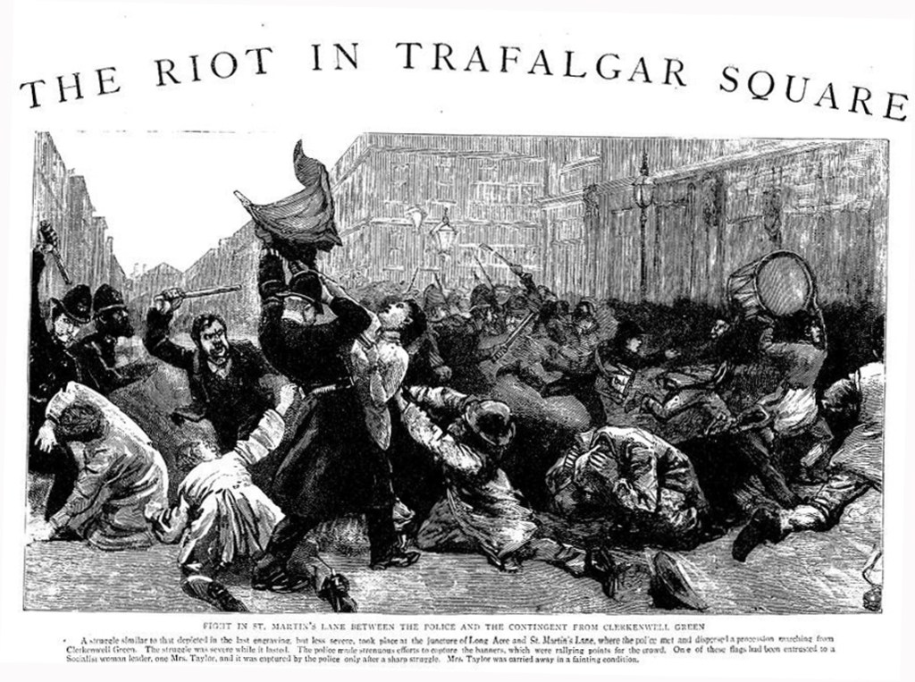 Trafalgar Square had been built in the 1840s, and had been contested by the authorities and radical crowds ever since. But the government and the police now insisted that Trafalgar Square was Crown property and that the right of meeting there did not exist.