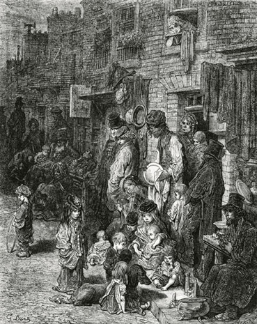 “THE one domestic question at present uppermost in the public mind is the social condition of the humbler classes. It has been forced upon us by a winter of unexampled severity; by an amount of national distress, not at all exceptional in the cold season, which has gone to the very verge of bread riots; and by agitations in the press and on the platform for an immediate improvement in labourers’ cottages. The chief streets of the metropolis have been haunted for weeks by gaunt labourers, who have moaned out a song of want that has penetrated the thickest walls. The workhouses have been daily besieged by noisy and half-famished crowds; the clumsy poor-law system, with its twenty-three thousand officers, its boards, and its twelve thousand annual reports, has notoriously broken down; the working clergy, and the London magistrates, worn out and exhausted, have been the willing almoners of stray benevolence; Dorcas societies, soup-kitchens, ragged-schools, asylums, refuges, and all the varied machinery of British charity, have been strained to the utmost; and now we may sit down and congratulate ourselves that only a few of our fellow-creatures have been starved to death. The storm to all appearance has passed, but the really poor will feel the effects of those two bitter months -December, 1860, and January, 1861 – for years.” (Ragged London in 1861, John Hollingshead, 1861.)