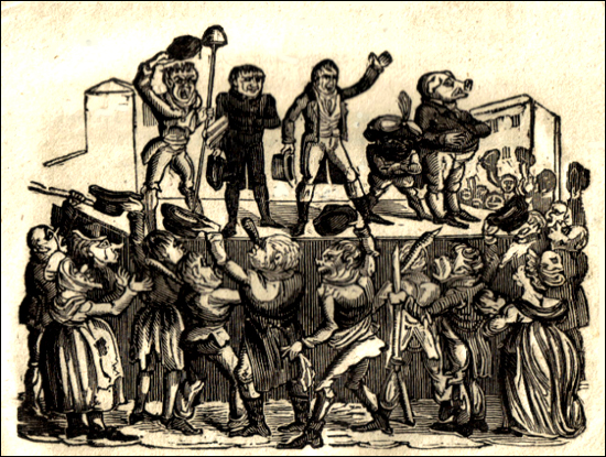 For a few years, Wooler and the Black Dwarf commanded the largest radical audience, (particularly after William Cobbett fled to the US, after the passage of the 1817 Coercion Act and fearing arrest for his arguably seditious writings). The ruling class, petrified that the reform movement would become powerful enough to overthrow their power, saw in the Dwarf and other radical papers the inspiration that might bring that terrible time about. In 1819 Viscount Castlereagh, England’s Foreign Secretary and perhaps the most hated member of the Government, complained in parliament that T. J. Wooler had become “the bugleman of the Radicals”, and that The Black Dwarf was circulating from radical Westminster to northern colliery districts, where it could be found “in the hatcrown of almost every pitman you meet.”