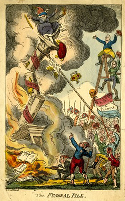 Its satire and parody also reflected the – then shocking and cutting edge – radical form of pisstaking of religious liturgy. For instance, an 1817 biblical parody attacked the House of Lords: “The LORD giveth, and the LORDS taketh away. Blessed be the way of the Lords”.