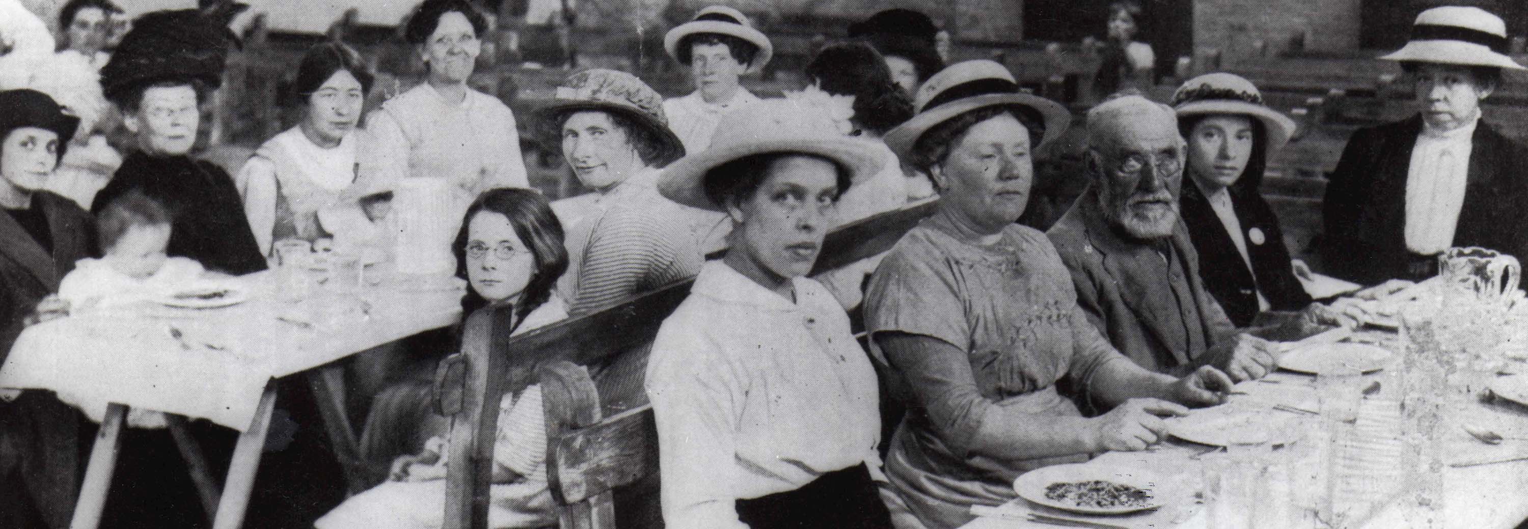 However, as the war went on, and deaths mounted, conscription was introduced, and shortages and privations started to it, the ELFS started to regain support. Gradually, the group evolved from a political organisation into a feminist social welfare movement, focusing on the daily needs of East End women. From this they developed political and social demands reflecting the impact the war was having on the poor: for control of food so people wouldn’t go hungry; against rent rises and wage cuts. A rent strike was attempted in August 1914. At this time some East End women were taking direct action – seizing food from shops without paying. At their Bow HQ, a former pub renamed the ‘Mother’s Arms’, the ELFs set up two cost-price restaurants to feed those with little money, and workshops where women could make items to sell to get by.