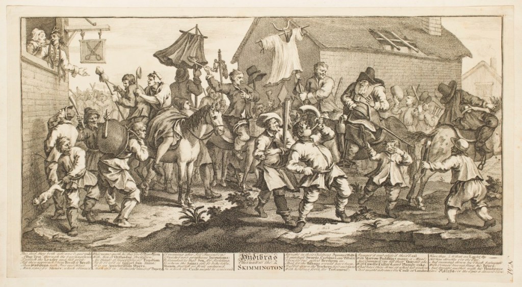 As with many community punishments there’s a feeling of a ritual element to the attack on Clarke; the questioning of him as he was being dunked evokes cross-examination in a trial setting; the dunking in water itself brings to mind the older ducking of scolds or witches. Whipping him through the streets and making him wear a halter around his neck were also legal punishments designed to humiliate an offender, engage the community in joining in chastising transgressors, and warn others. Self-consciously or sub-consciously, collective actions often adopt ritual elements – sometimes drawn from law, religion, even theatre; because people are looking for a form that legitimises their actions? Gives them a meaning they can get their heads around? Just because memory brings forward what you’ve known and seen? All of the above, mingled together, probably…