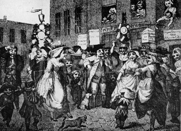 What united rulers of whatever stripe, Royalist or Parliamentarian, was ‘the fear of riot and rebellion during a period characterised not only by dramatic religious change but by inflation and harvest failure’ (Hutton,1994). May was a prime month for such rebellion: the Peasants Revolt 1381 and Jack Cade’s rebellion 1450 both started during the May Whitsun holidays. In 1517 the events known as ‘Evil May Day’ took place in London, an uprising of apprentices that targeted the houses of foreigners living in the city – arguably an early ‘race riot’ and a reminder that popular rebellions are not always propelled by emancipatory impulses.