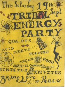 For instance: in June 1998, during Camberwell Arts Week, a Summer Solstice party was held, featuring a three-quarter size model of Stonehenge, made of fibre-glass. Several hundred urban pagans reproduced their own Stonehenge Festival… during which a slightly inebriated reveller fell against one of the stones and, as they were all roped together) nearly dominoed the whole lot!