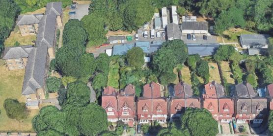 DOWN THE SIDE OF THE GREEN TO CHURCH STREET; CROSS OVER THE ROAD TO WREN ROAD – WALK UP TO ‘THE COLONNADES’ FLATS AT THE SOUTHERN END