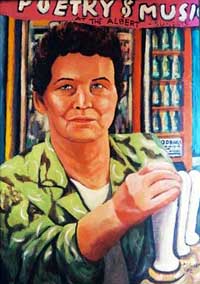 Maureen Scott was a member of the LSA. We love her portrait of Pat Burke, formidable former landlady of the Prince Albert in Brixton