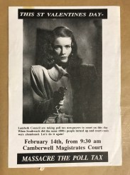 Camberwell magistrates Court was opened in 1971 (on the site of houses demolished by a WW2 V2 rocket) and said in the 1990s to be the busiest Magistrates Court in the country. Outside of the usual, some occasions it has seen heavy use include: after the Brixton uprising of April 1981, other riots/rebellions of July 1981, after the 1985 Brixton riot, and during the Poll Tax, when not only were non-payers from Lambeth prosecuted there but anti-poll tax rioters from various shindigs in 1990 at Lambeth Town Hall, Brixton Prison etc, were had up. Anti-poll tax activists generally supported non-payers here, 1991-93, including a (somewhat damp squib, by my memory) demonstration called against the first prosecutions for non-payment in Lambeth on February 14th 1991: ‘St Valentine’s Day… Massacre the Poll Tax!”