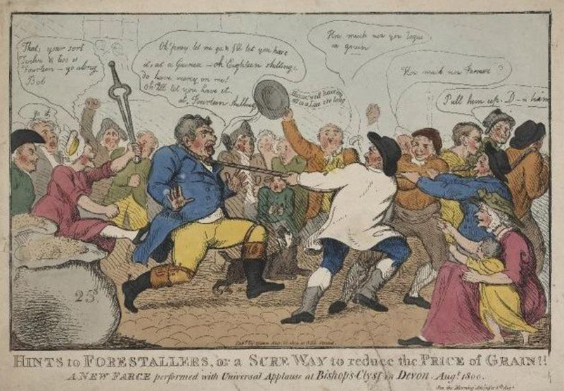 In 1799, 1800 and 1801 widespread rioting broke out throughout England. Most of these were food riots, provoked by scarcity and soaring prices during Napoleon’s continental blockade of Britain. The cost of a loaf of bread was at an all time high of 1 shilling 9 d. High grain prices meant hikes in the cost … Continue reading All this week in London consumer history, 1800: Bread rioters force the City’s Corn Exchange to close