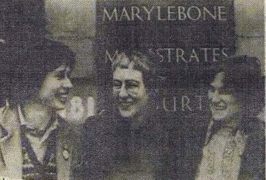 The prosecution had to withdraw the case against Ann Taubman after the arresting officer discovered she had left her notebook at home in Orpington! Fortunate really as she claimed to have arrested Ms Taubman at 9.55pm in Brewer St when the procession did not leave Leicester Square until after 10pm. Jill Posener was found guilty of assaulting a policeman and fined £50 despite the extreme vagueness of the policeman as to the details of the alleged assault. As the defence pointed out, he replied “I don’t know” at least 15 times during cross-examination. Val Cook, Sarah Mosedale and Sally Collings were all found guilty of obstructing the highway and given a year’s conditional discharge. Two of them had to pay £50 court costs.