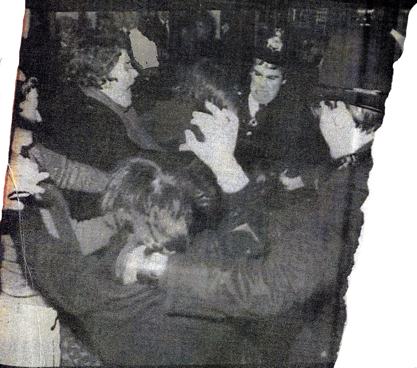 The words women’s liberation movement seem to make a little red light flash these days at Scotland Yard. Every so often they must mark out an area as subversive, which they then keep an eye on and try to wear down by frightening people into passivity. But may be the police raid on a London National Abortion Campaign benefit is not connected with the police brutality a few days later against women trying to reclaim the night from male domination and violence. I shouldn’t be surprised though if Astrid Proll’s feminism had set them sniffing around.”