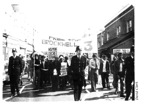 at random, beaten in the copshop, charged with affray, Assault on Police, Possession of offensive weapons. They were found guilty in March 1974, and got three-year sentences. There was an outcry; especially about Robin Sterling, who was only fifteen. While community leaders like Rudy Narayan and Courtney Laws launched appeals and mitigating pleas, a mass meeting of 70 schoolkids, very militant, aged 9-15, called by the Tulse Hill Students Collective (based around pupils at Tulse Hill School), organised a 1000-strong kids demo from Kennington Park past Camberwell Magistrates Court, through Brixton, past Tulse Hill School to Brockwell Park, and sparked a strike in several South London schools. The Tulse Hill Collective was influenced by the local Black Panthers; including the school’s most notable radical ex-pupil, local Dub poet, former Black Panther, member of the Race Today Collective – Linton Kwesi Johnson… Other former Tulse Hill pupils include ’80s reggae legend, the Cockney Translator, Smiley Culture, deceased in 2011 in dubious circumstances while being arrested at his home in Surrey, and former Lambeth Councillor, GLC supremo and London mayor, Ken Livingstone.