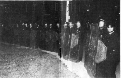 Grandiose claims were made for the SPG’s affect in reducing street crime, the main excuse given for their presence. Figures were bandied about, Reports issued, but little real hard evidence could ever by brought to bear. The anger the squad’s heavy-handed tactics created built up throughout the decade. Across the country, the SPG were increasingly being used to police (attack) strikes & demonstrations; they had evolved from an anti-crime unit into a paramilitary force. Police methods in Brixton more and more seemed to be the actions of an occupying army against the local people. And this wasn’t just a Conspiracy theory – that’s how the cops themselves saw things.