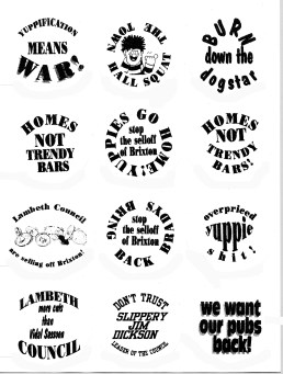 In Lambeth, auction signs were up outside council property all over the place (by 1993, many private houses that had been bought on precarious mortgages were also for sale as newly skint folk defaulted on their mortgages). A combination of national policy and council skullduggery led to virtually all Lambeth’s street properties (ie houses not on estates) being sold off – much of it to property developers, to be done up for the middle classes, who were swarming in on Brixton. This was closing down many of the housing co-ops/ shortlife groups, created from the Council’s response to the squatting wave. Meanwhile, estates were being handed over to housing associations, to be run as social housing, but with a lot less security for tenants, and with few guarantees of a cheap rent future, as many associations were increasingly being run as orthodox property companies. After 20 years the Council had finally got the upper hand over squatters.