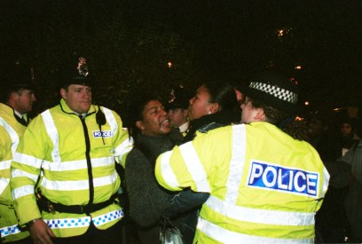 Several officers chased and kicked a black youth, and other demonstrators who intervened were roughed up, one having his arm broken. 26 people were nicked in the ‘fracas’.