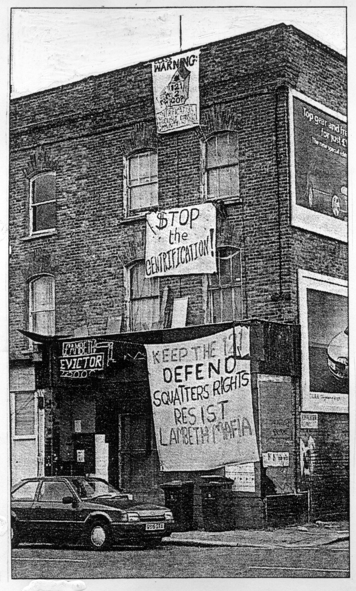 In Lambeth, auction signs were up outside council property all over the place (by 1993, many private houses that had been bought on precarious mortgages were also for sale as newly skint folk defaulted on their mortgages). A combination of national policy and council skullduggery led to virtually all Lambeth’s street properties (ie houses not on estates) being sold off – much of it to property developers, to be done up for the middle classes, who were swarming in on Brixton. This was closing down many of the housing co-ops/ shortlife groups, created from the Council’s response to the squatting wave. Meanwhile, estates were being handed over to housing associations, to be run as social housing, but with a lot less security for tenants, and with few guarantees of a cheap rent future, as many associations were increasingly being run as orthodox property companies. After 20 years the Council had finally got the upper hand over squatters.