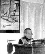 For that Social the walls of the Hall were lined with drawings and collages by Jo illustrating Freedom Press’s publications and activities over a period of sixty years. They represented weeks of patient, dedicated cutting and pasting and arranging. Most of it was done at Jo’s West London hideout, on the floor, the artist in his socks, sustained by tobacco, alcohol and simple food (uncooked bacon sandwiches were a favourite but he eschewed all salads). Some comrades may recall those collages and posters which alas have completely disappeared as have the originals of his cartoons in the course of Freedom Press’s many moves over the past thirty years.