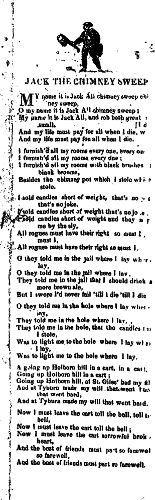 In the style of the time, Jack’s exploits made him a celebrity, half folk hero and half folk-devil. Like many another petty (and not so petty) crim through the centuries, his story was quickly marketed and sold, in the form of cheap ballads and longer ‘confession’. There were sold in the streets and pubs, often whipped out fast enough to be flogged at the hanging of the condemned.
