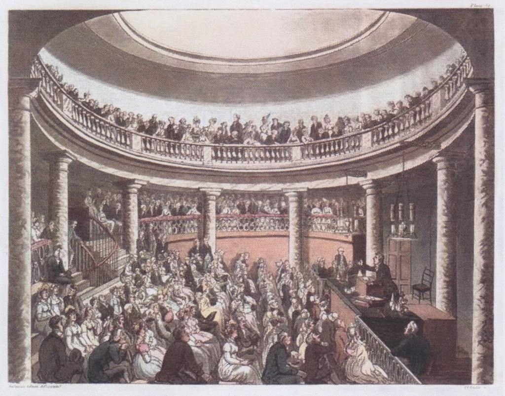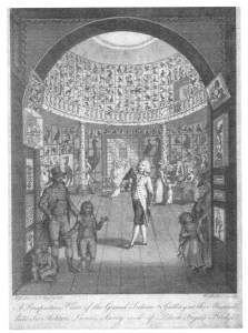 Taylor’s Rotunda lectures were multi-media extravaganzas, enhanced by 12 zodiacal emblems painted on the dome overhead, and a large board carrying greek ‘hieroglyphs’, a mechanical pointer, an expensive illuminated globe and a clockwork orrery… he was also sometimes accompanied by a female chorus playing guitars. His ‘Divine Service’ was offered on Sundays: a burlesque on bible, it usually started with readings from scripture, expanding into a satire on the Anglican service.