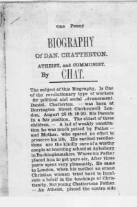 Chatterton was an active freethinker and had an exchange of letters with the Archbishop of Canterbury which was published in The Times. Amongst the publications he hawked were the Freethinker and the National Reformer.