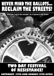 to coincide with the run-up to the general election – a series of events variously known at the March for Social Justice, Reclaim the Future, the ‘Festival of Resistance’ and Never Mind The Ballots.